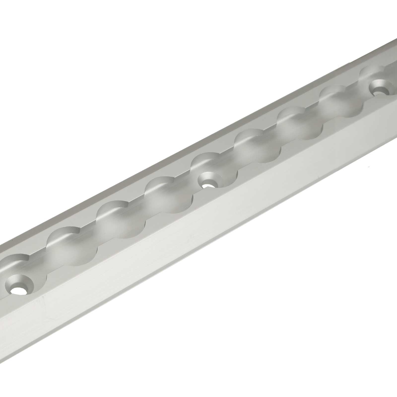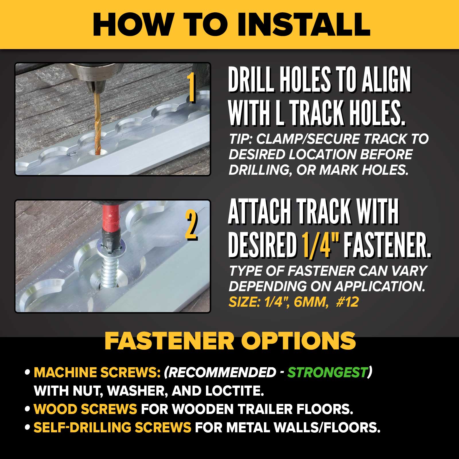 Our angled track has pre-drilled holes that are compatible with our fastener pack, as well as many other common screws for convenient installation - 1/4", 6mm, or #12 fasteners.