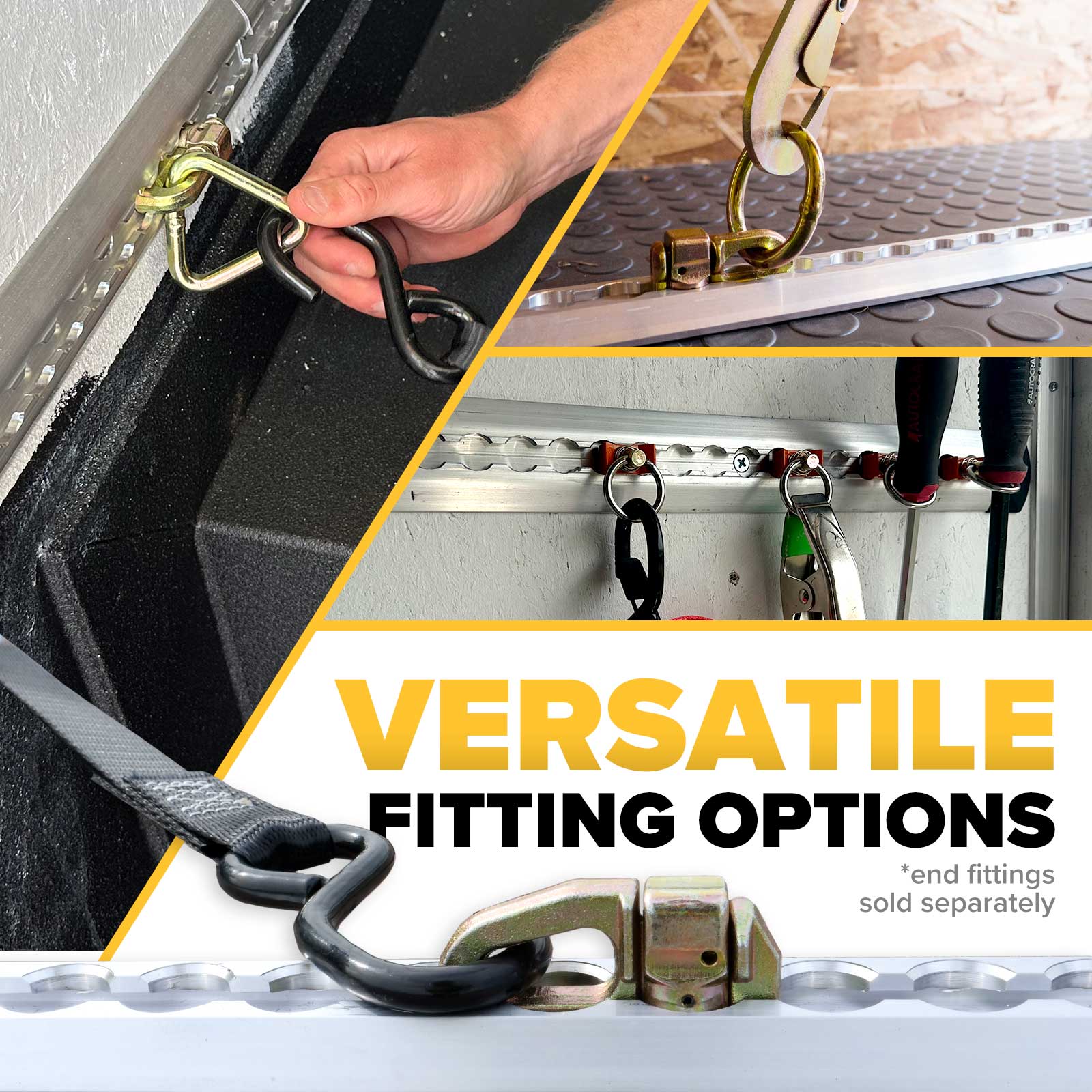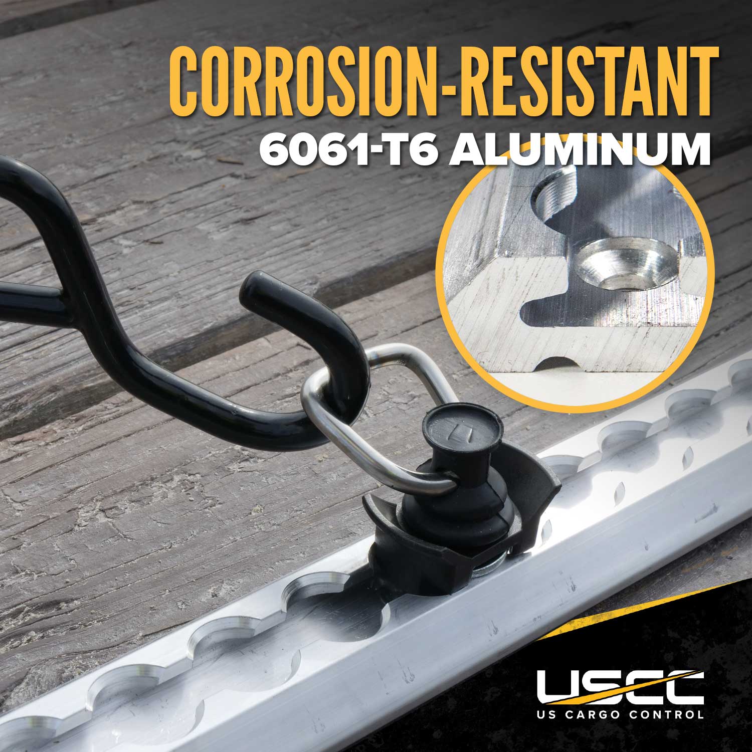 This tie down track is made from lightweight grade 6061-T6 aluminum for superior corrosion-resistance, and it has connection points along the full length of the track. This gives you the flexibility to customize your anchor point location depending on your cargo.