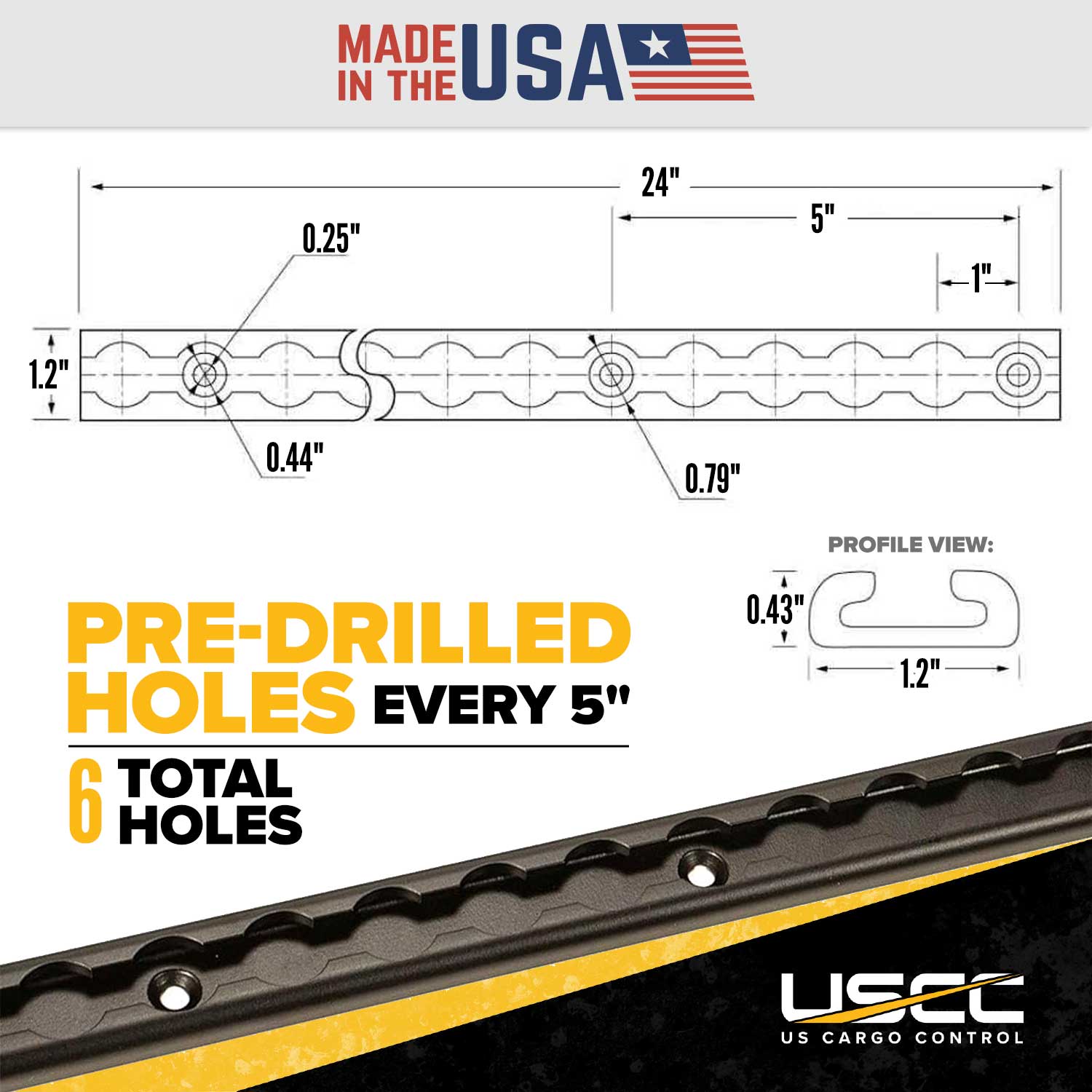 It's made from lightweight grade 6061-T6 aluminum for superior corrosion-resistance, and it has connection points along the full length of the track. This gives you the flexibility to customize your anchor point location depending on your cargo.