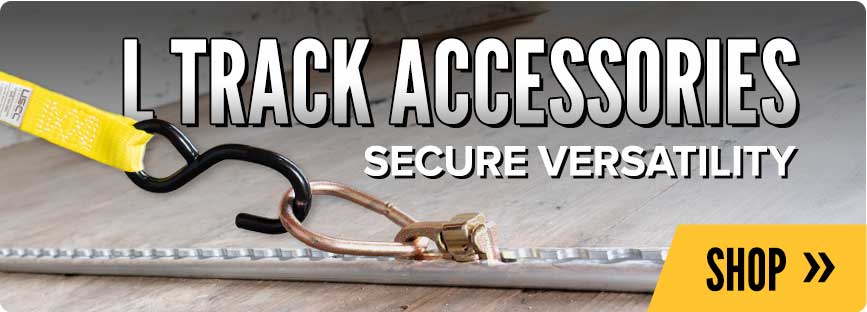 - Versatile Accessories: We carry a wide range of L-track-compatible fittings (both single and double stud) and straps so it's easy to create the tie-down system you need. The straps connect directly to the track, while the fittings will work with any standard S-hook straps you have lying around. You can even request a custom cargo net with L-track fittings.