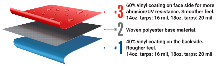 14 oz. tarp material delivers strong and reliable protection with a lower overall weight for easier handling.
