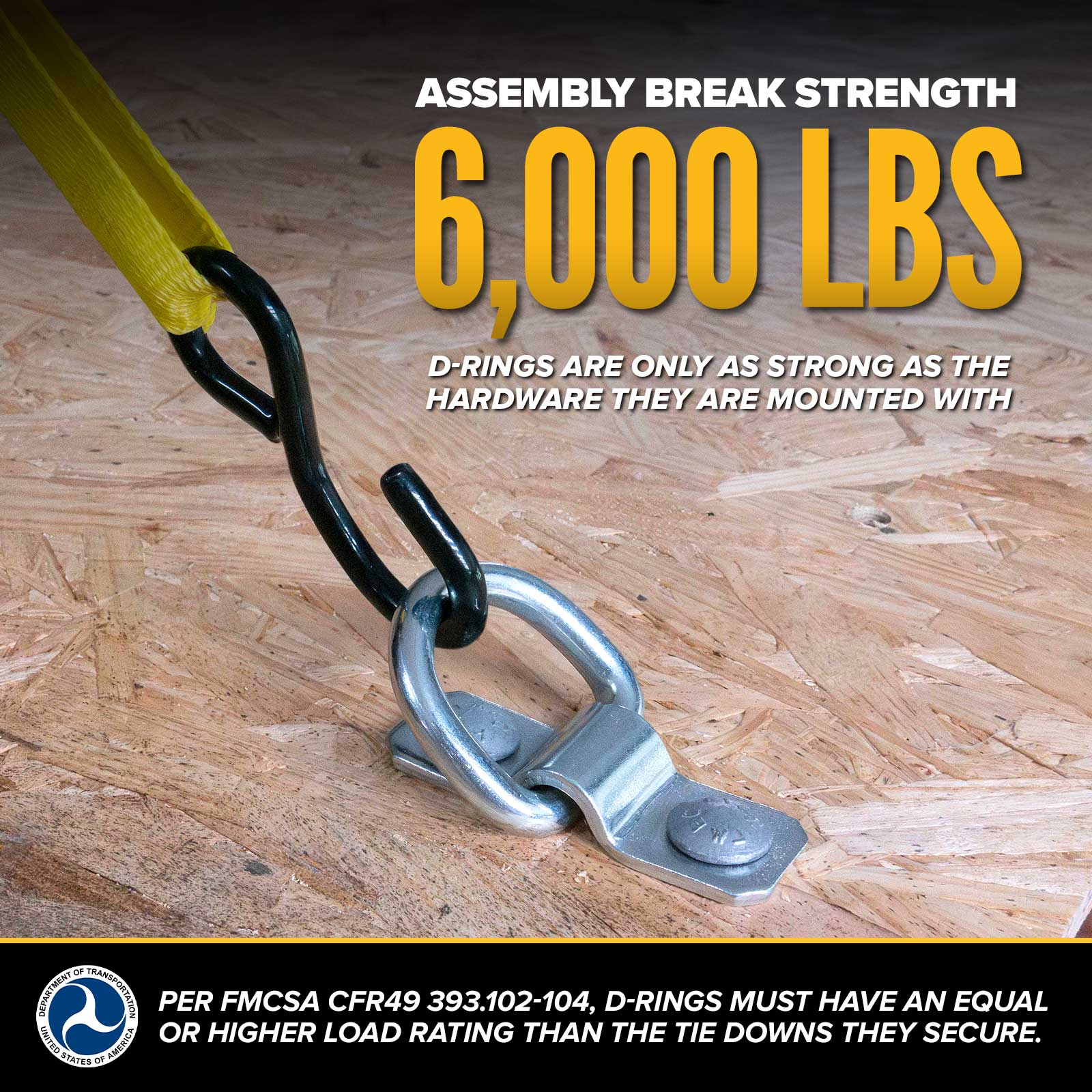 Bolt-on D-rings are the perfect solution for adding more tie down anchors to your trailer or enclosed van. It comes with a mounting clip for easy installation, and gives you the flexibility of placing anchor points exactly where you need them.