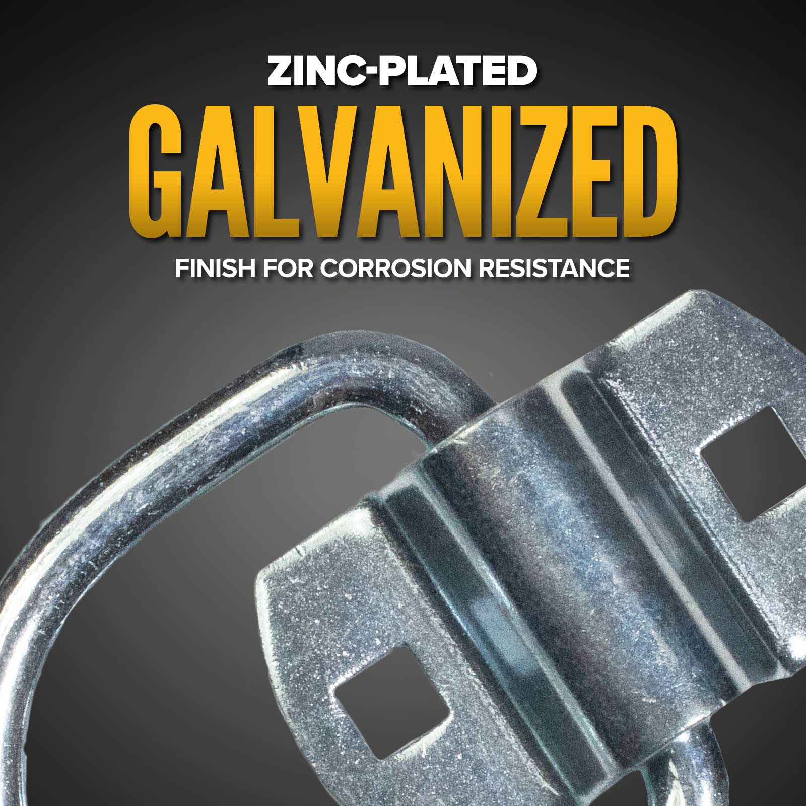 This D-ring comes with a galvanized finish (also known as zinc-plating) to prevent corrosion, making it suitable for most exterior applications. It's well-suited even for enclosed trailers with moderate exposure to moisture or mud.