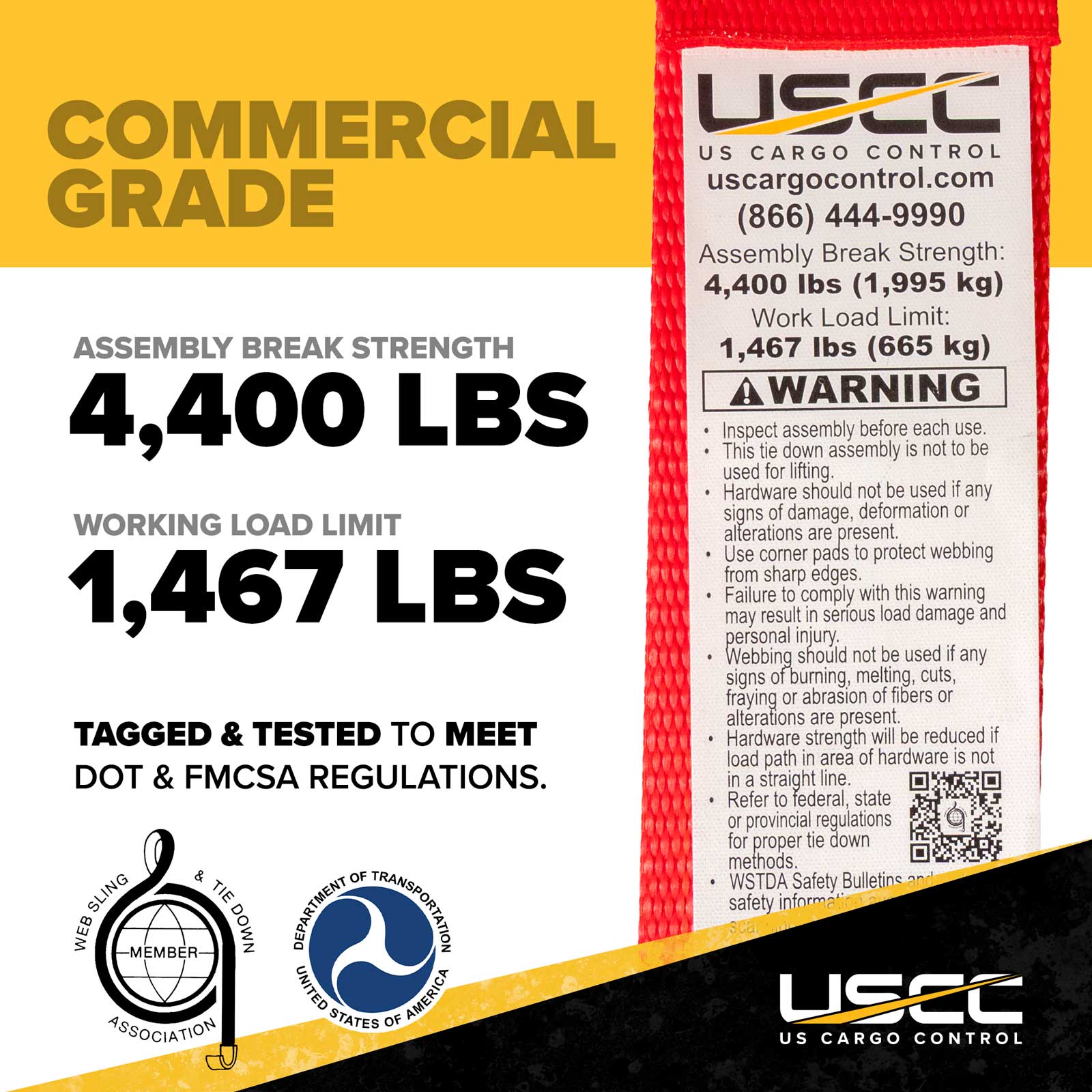 Industry-Compliant: Tagged and stenciled with the working load limit to meet FMCSA and DOT regulations, CVSA and WSTDA guidelines, and North American Cargo Securement standards. Learn more about proper load handling and securement in the WSTDA safety bulletins.