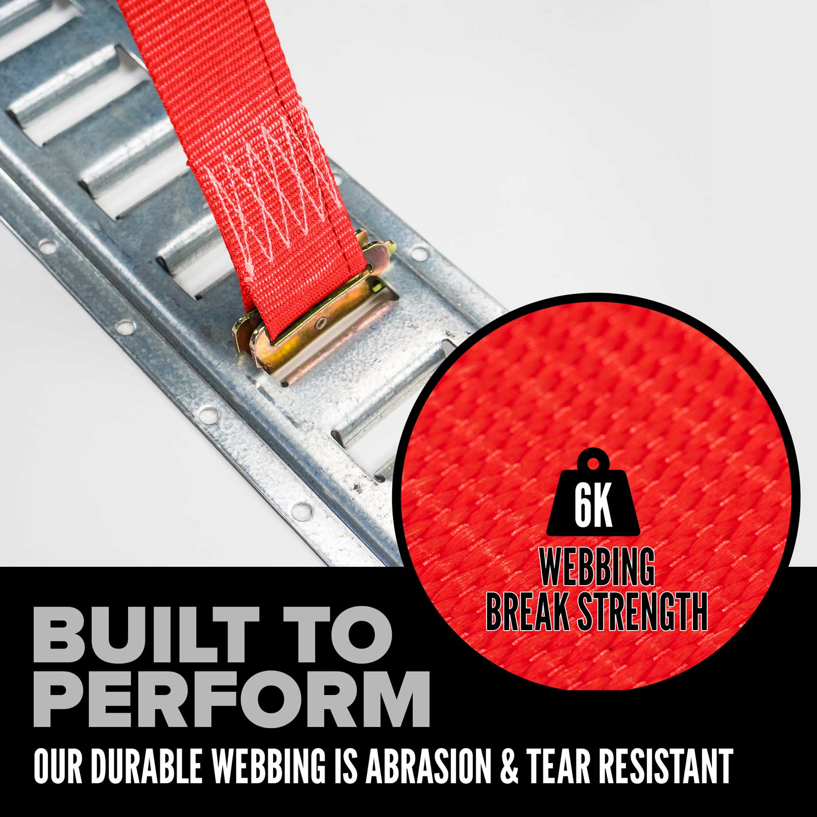 These E-track straps use a crank-to-tighten ratcheting mechanism rather than the pull-to-tighten system seen in cam strap versions. This design makes it easy to get your strap very tight, ideal for large, heavy loads. They also have a higher working load limit compared to cam straps.