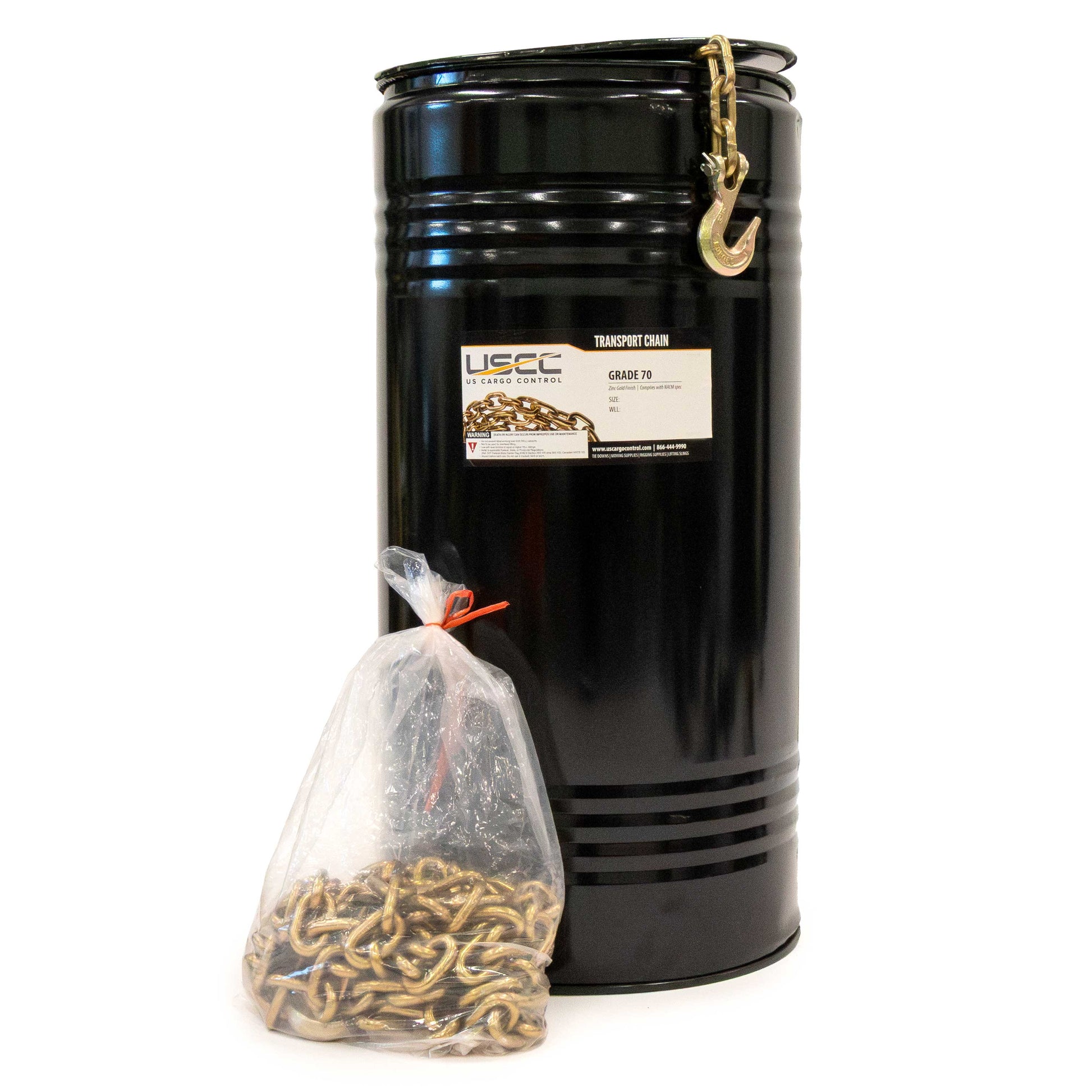 3/8" x 20' Grade 70 Transport Chain with Clevis Grab Hooks | 20-Pack Drum