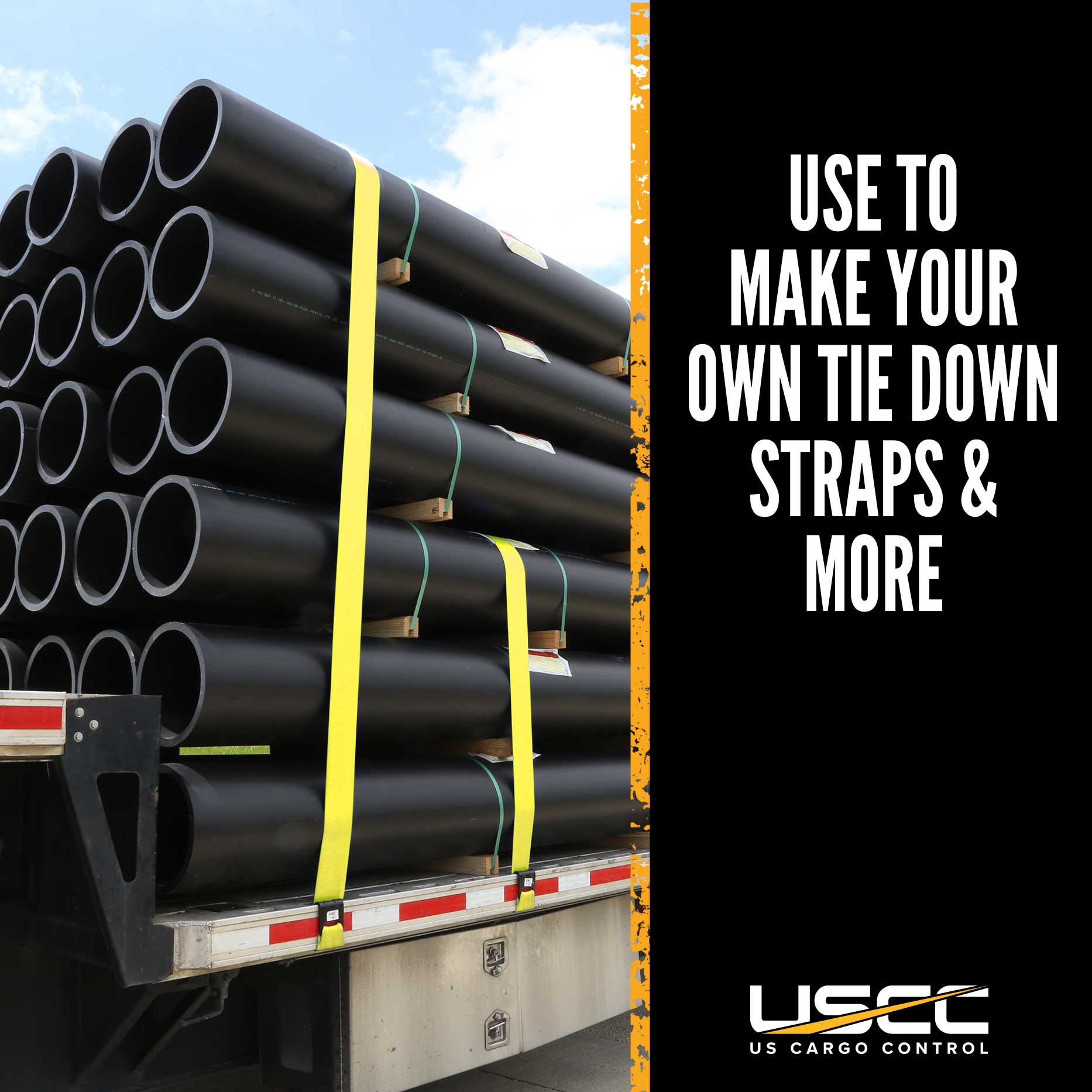 Yellow 3 inch polyester webbing combines a low stretch factor with a tough break strength of 18,000 lbs. Because polyester webbing resists abrasion, UV rays, and water, it won't rot, mold, mildew or shrink, even when exposed to outdoor elements. Replace straps on your old tie down assemblies in need of new webbing, or add new tie down hardware to easily create the equipment you need: ATV straps, cargo nets, motorcycle tie downs, etc. Shipped in a roll of 300'.