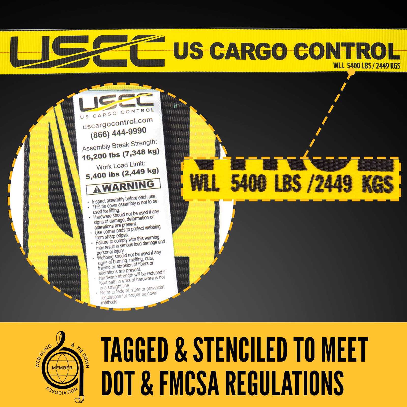 - Industry-Compliant: This 4 inch ratchet strap is tagged and stenciled with break strength and working load limit to meet FMCSA and DOT regulations, CVSA and WSTDA guidelines, and North American Cargo Securement standards. Learn more about proper load handling and securement in the WSTDA safety bulletins.