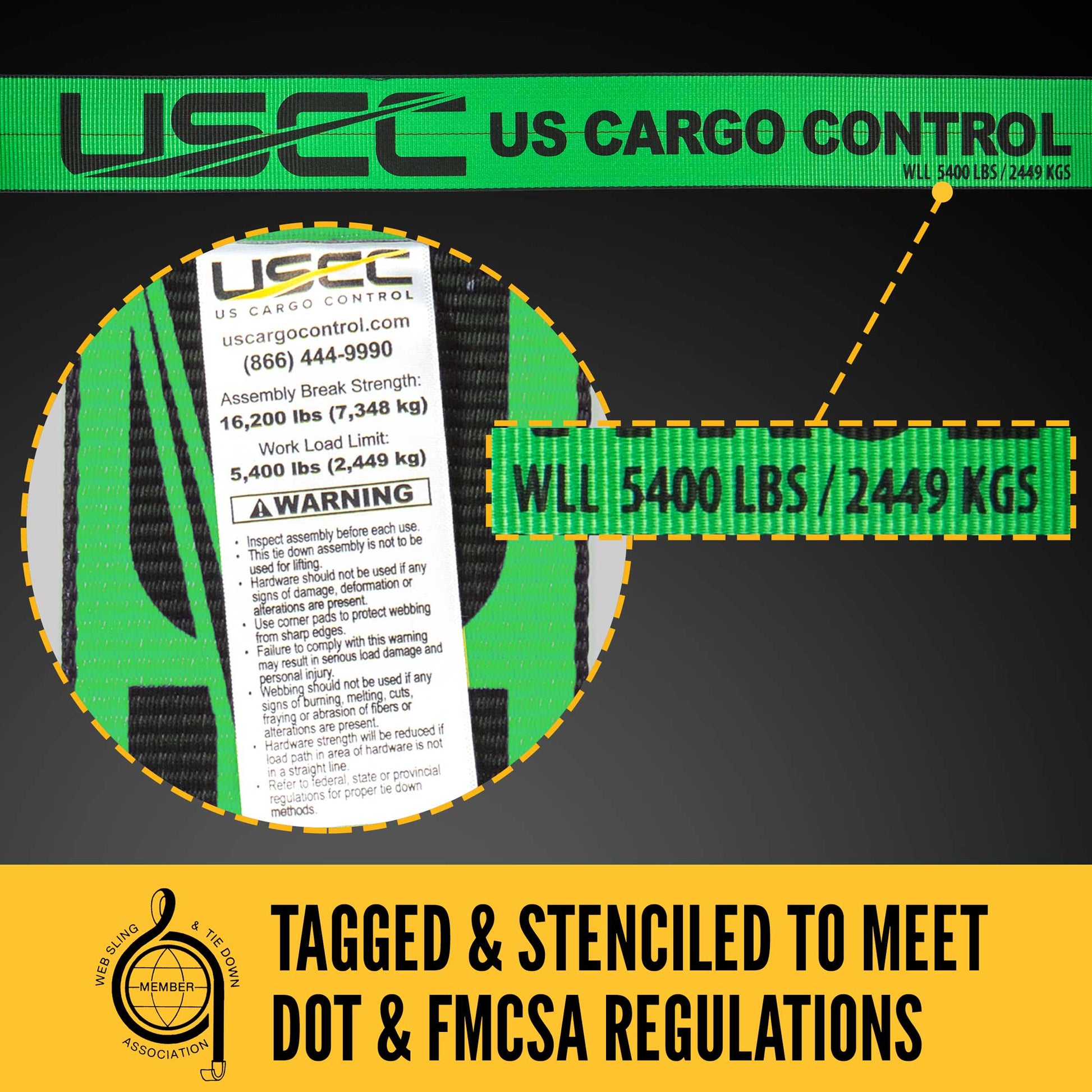 - Industry-Compliant: This 4 inch strap is tagged and stenciled with break strength and working load limit to meet FMCSA and DOT regulations, CVSA and WSTDA guidelines, and North American Cargo Securement standards. Learn more about proper load handling and securement in the WSTDA safety bulletins.