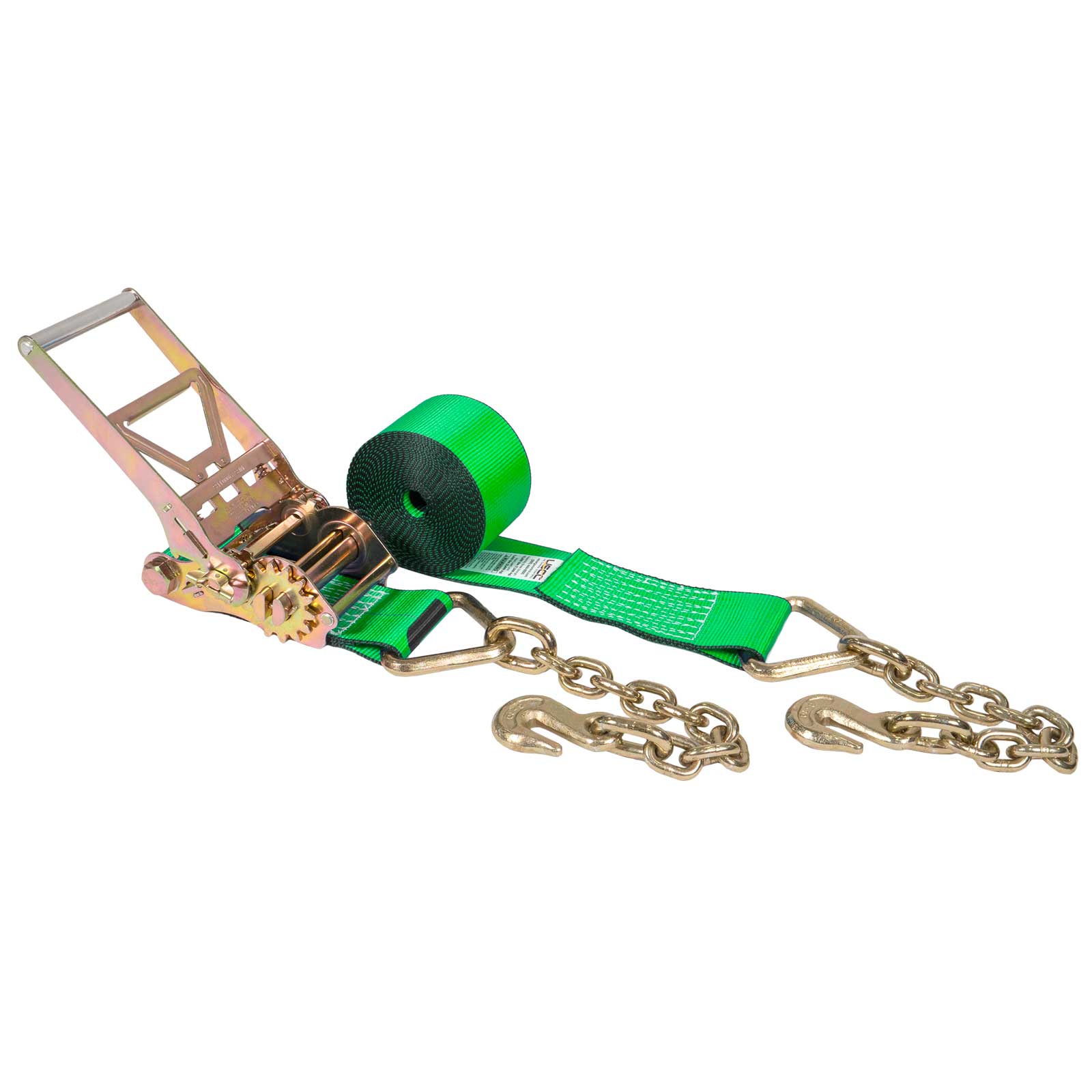 4" x 40' Gear-Driving Reverse-Action Ratchet Strap with Chain Ends | Green!
