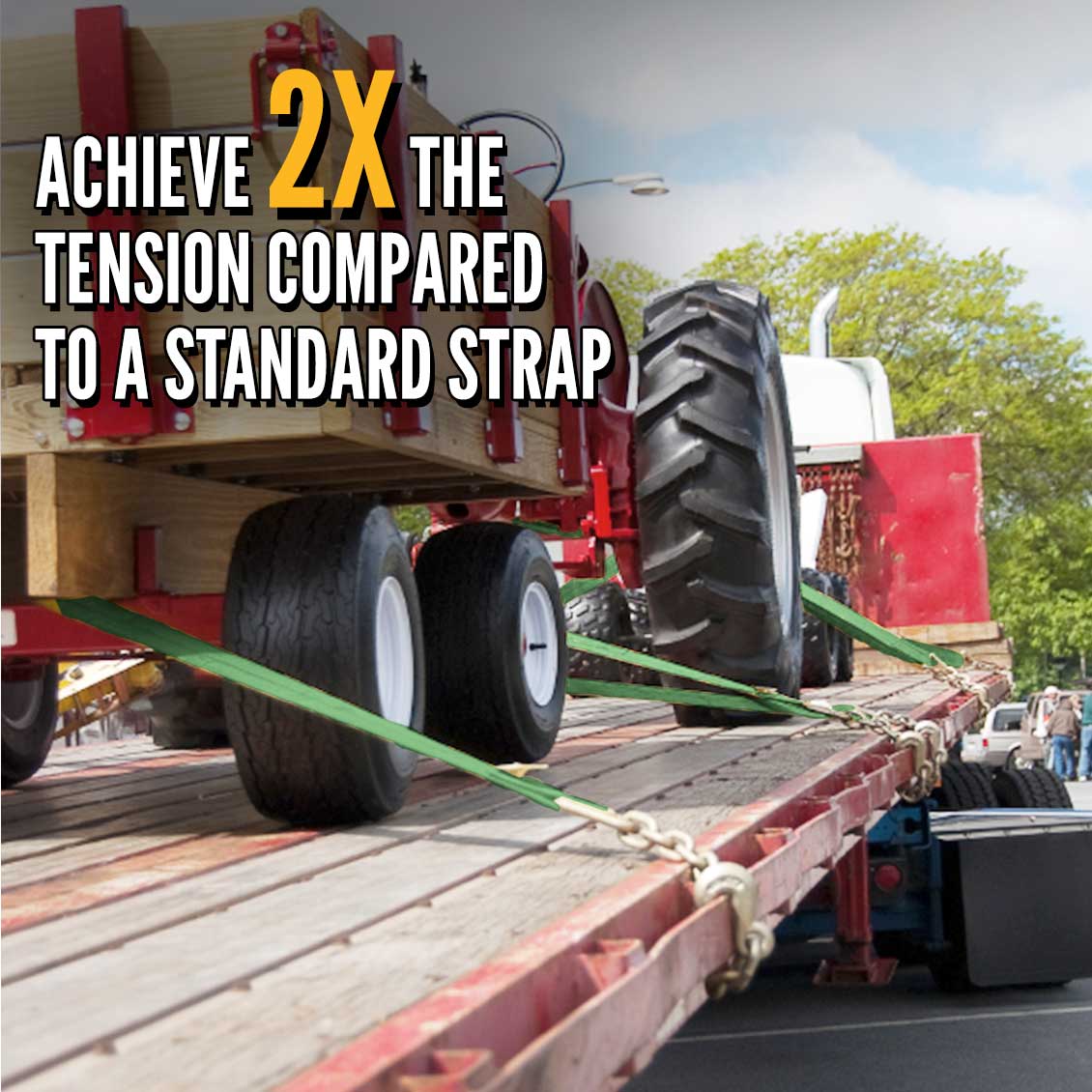 - You can achieve nearly twice the tension on the strap with equal or less effort (tested in-house against a standard ratchet)