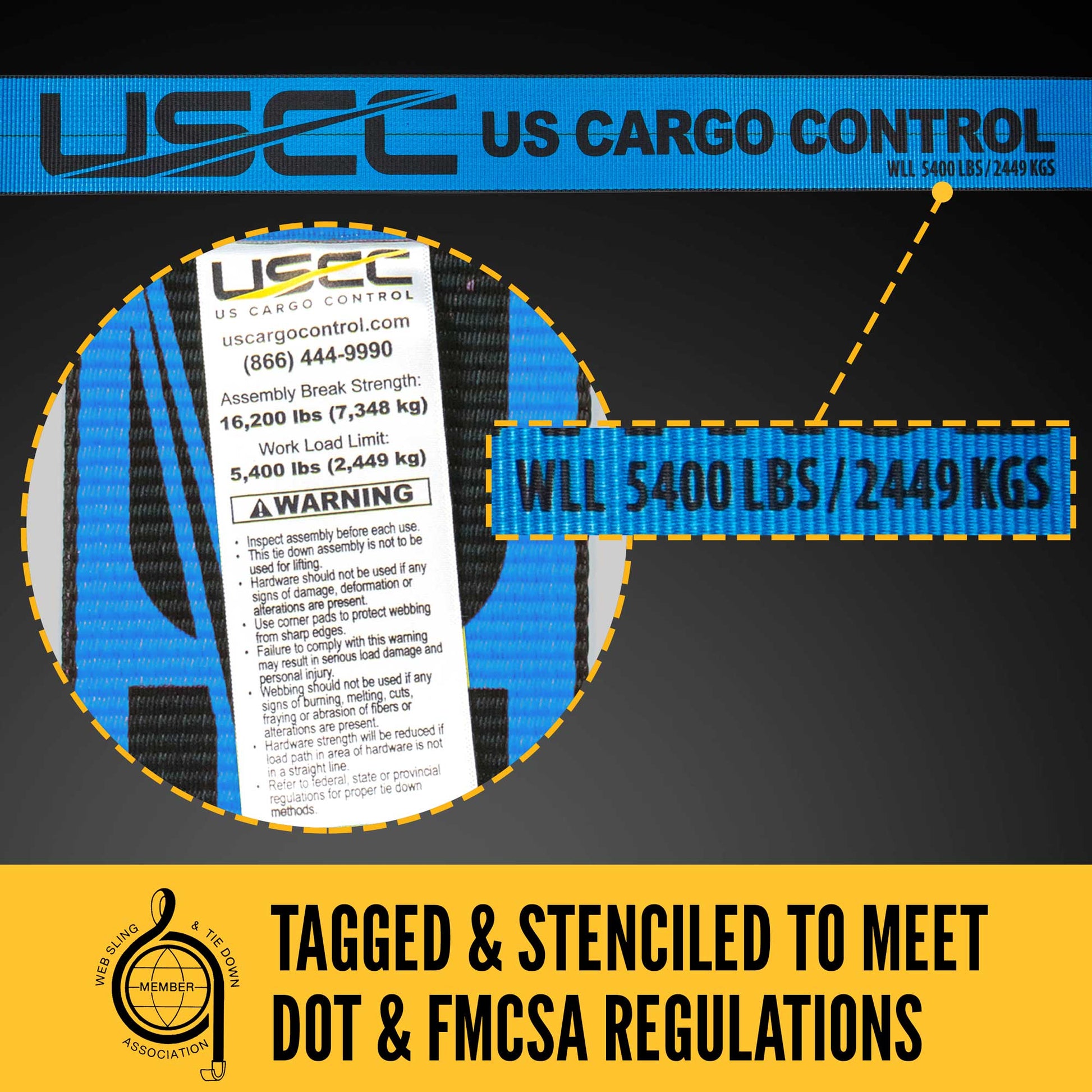 - Industry-Compliant: This 4 inch strap is tagged and stenciled with break strength and working load limit to meet FMCSA and DOT regulations, CVSA and WSTDA guidelines, and North American Cargo Securement standards. Learn more about proper load handling and securement in the WSTDA safety bulletins.