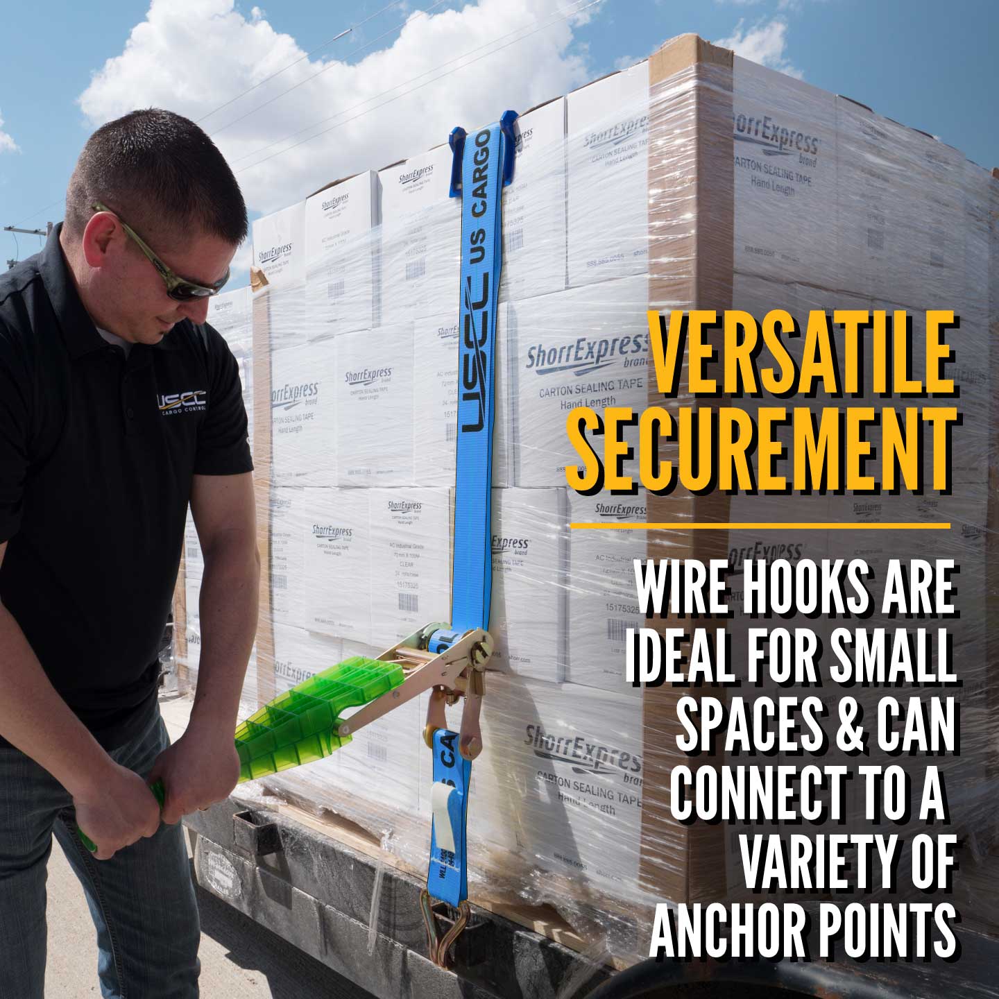 4" x 40' Ratchet Strap with Wire Hooks | Blue | 90-Pack (Pallet)