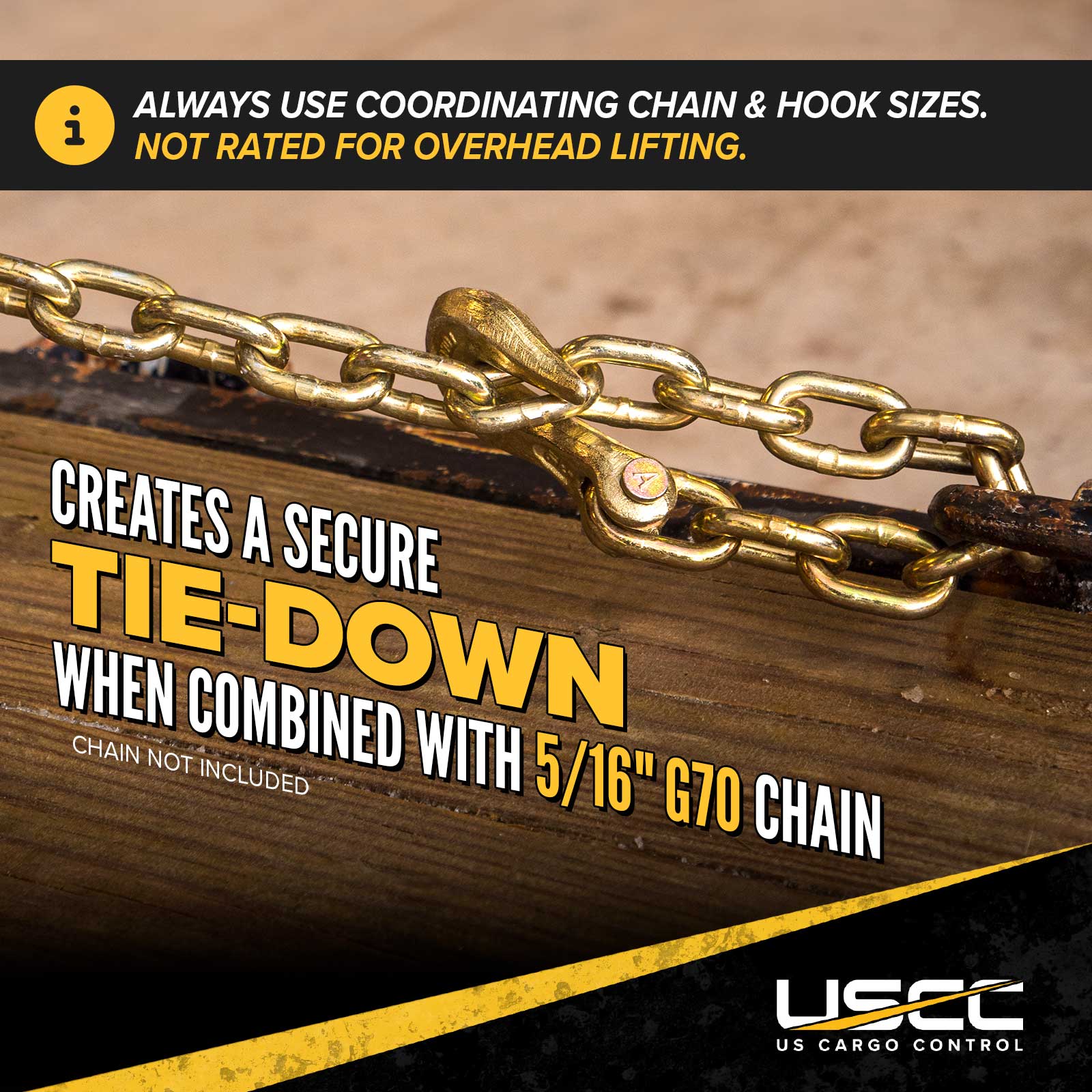 Grade 70 transport chain is the most popular option for tying down loads on a flatbed or other trailer. This grab hook, when combined with G70 chain, creates a secure tie down that can get your cargo where it needs to go safely.