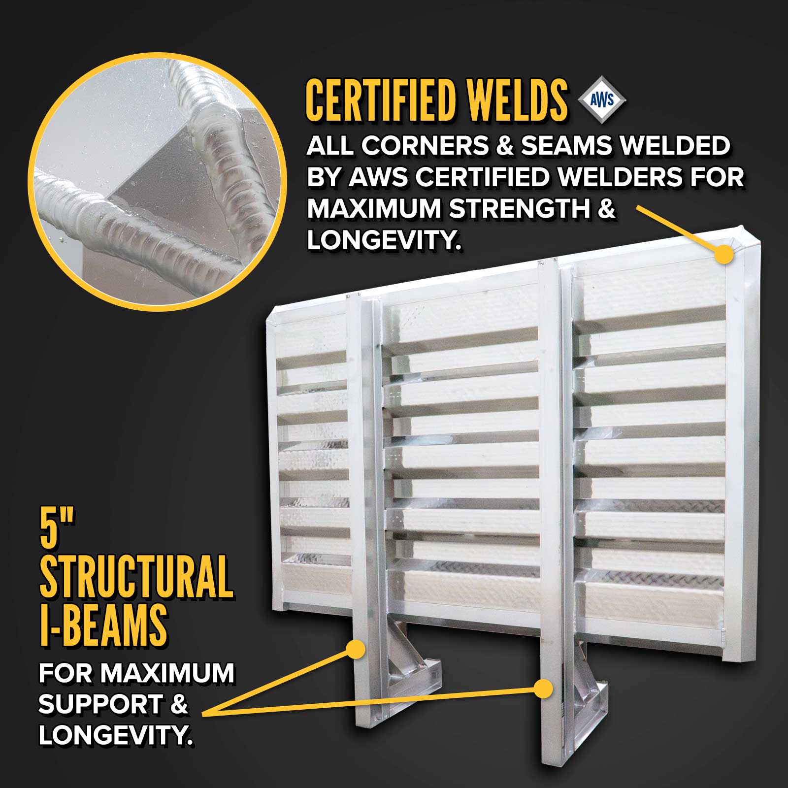Engineered for strength and built to last, Sturdy-Lite's headache racks are crafted with uncompromising quality. All corners and seams are expertly welded by AWS-certified welders, ensuring superior durability in every detail. With high-strength 5" structural I-beams providing maximum support, this is heavy-duty performance you can count on—proudly made in the USA.