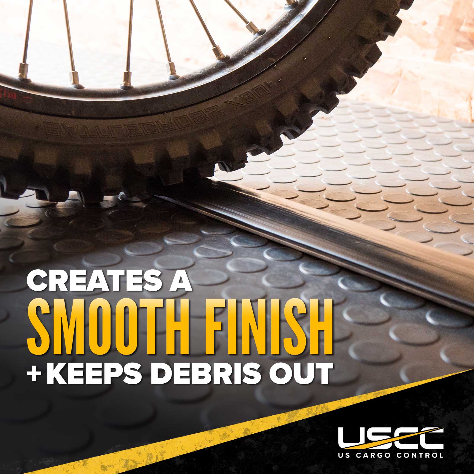 Our 10' Black Filler Strip for L-Track fits into unused holes in the track to keep out dirt, sand, and other debris. The pliable yet heavy-duty plastic also creates a smooth, rounded surface, making it easier to roll motorcycles, ATVs, hand carts, and other wheeled cargo over the track. It's compatible with all of our L-track styles and can be cut to length as needed.
