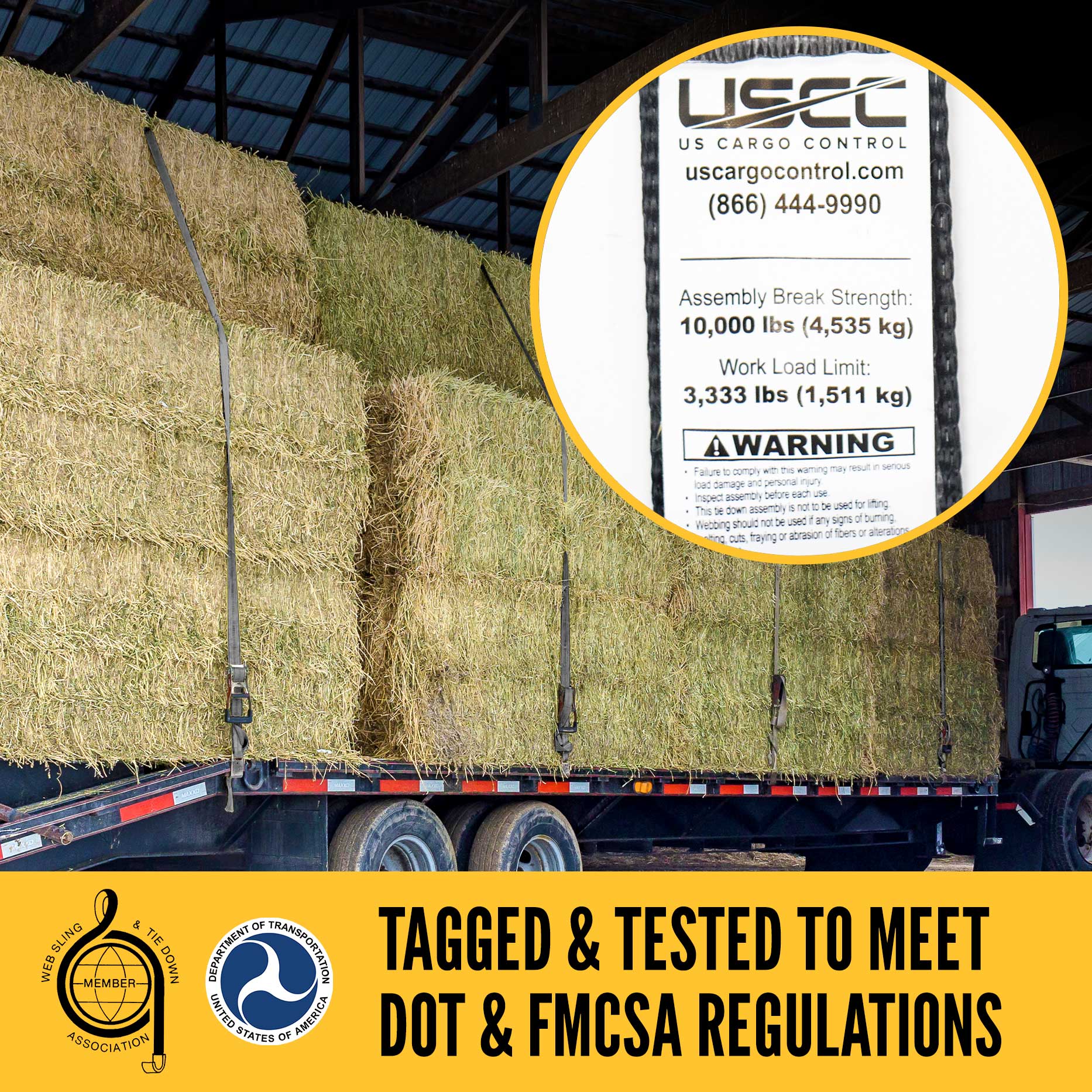 Industry-Compliant: This 2 inch ratchet strap is tagged with the working load limit to meet CVSA guidelines, FMCSA and DOT regulations, and WSTDA, CHP and North American Cargo Securement standards. Learn more about proper load handling and securement in the WSTDA safety bulletins.