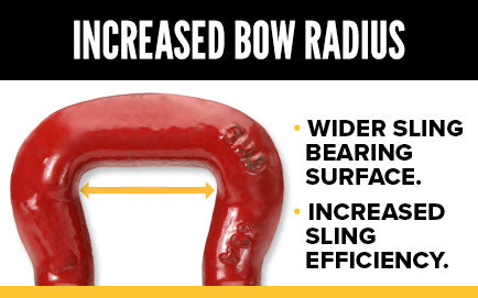Increased Sling EfficiencyThe wider bow width provides a wider sling-bearing surface, increasing the sling's efficiency by at least 15% over standard shackles. It also allows 100% of the sling's working load limit to be achieved. Ideal for use with synthetic web slings and round slings.