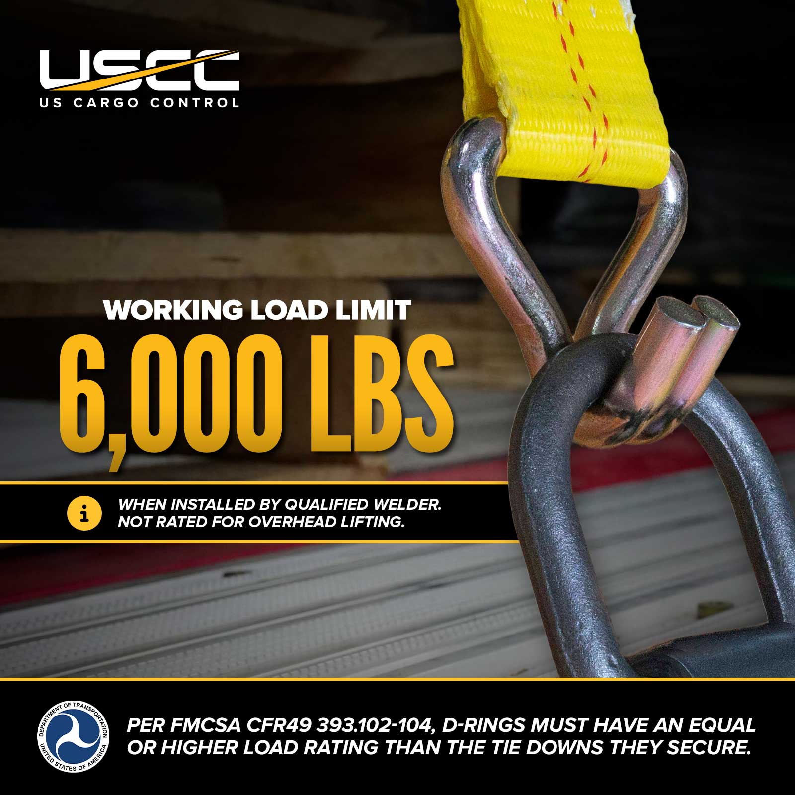 Note: Before purchase, double-check to make sure your tie down attachments are compatible with the D-ring dimensions.