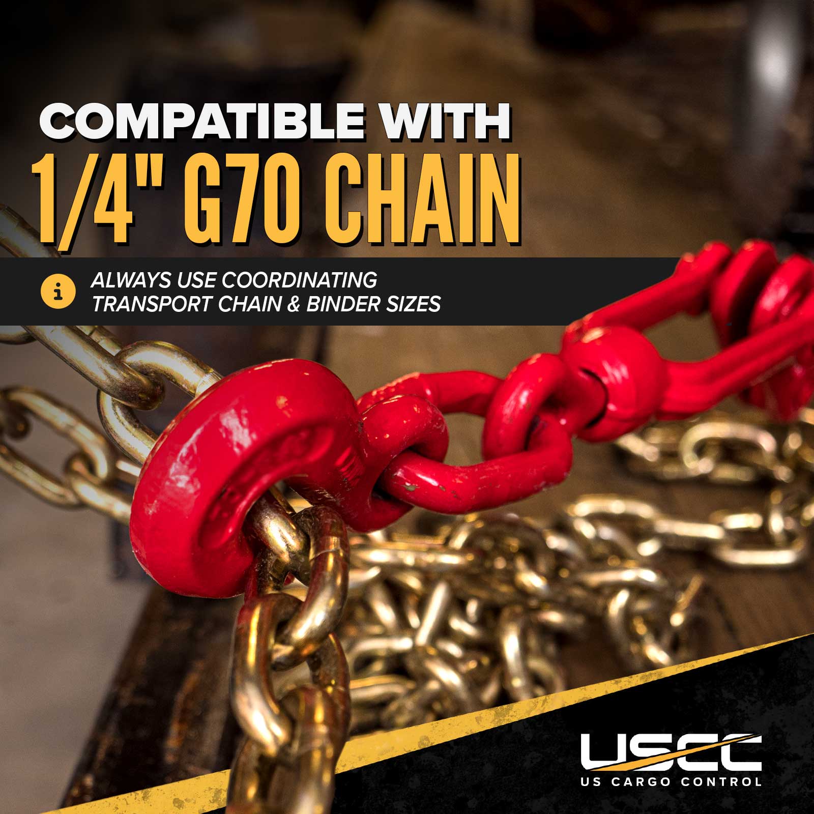 This lever binder should be used with 1/4" grade 70 transport chain.
