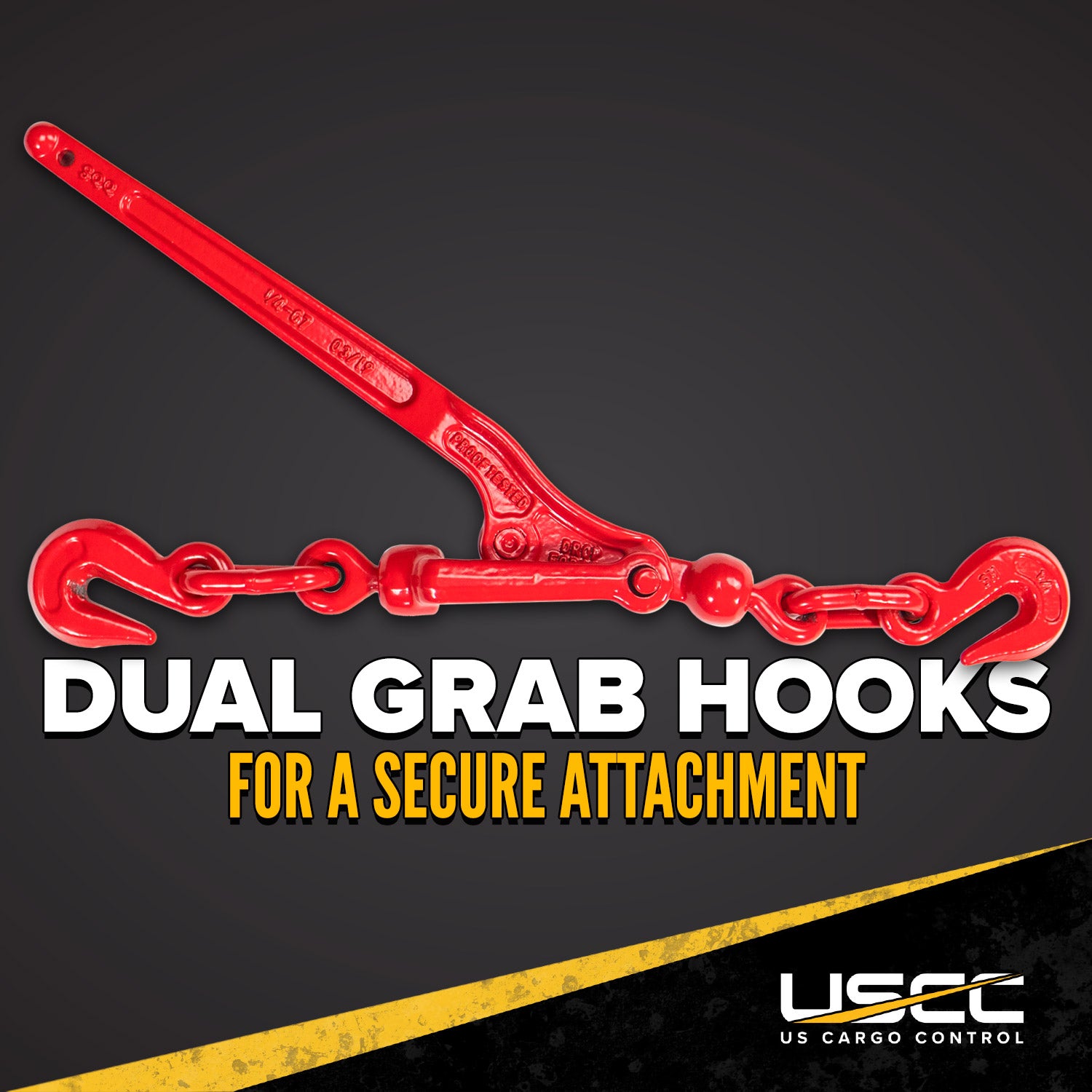 The grab hooks on each end create secure attachment points - their shallow throats are readily compatible with chain links.