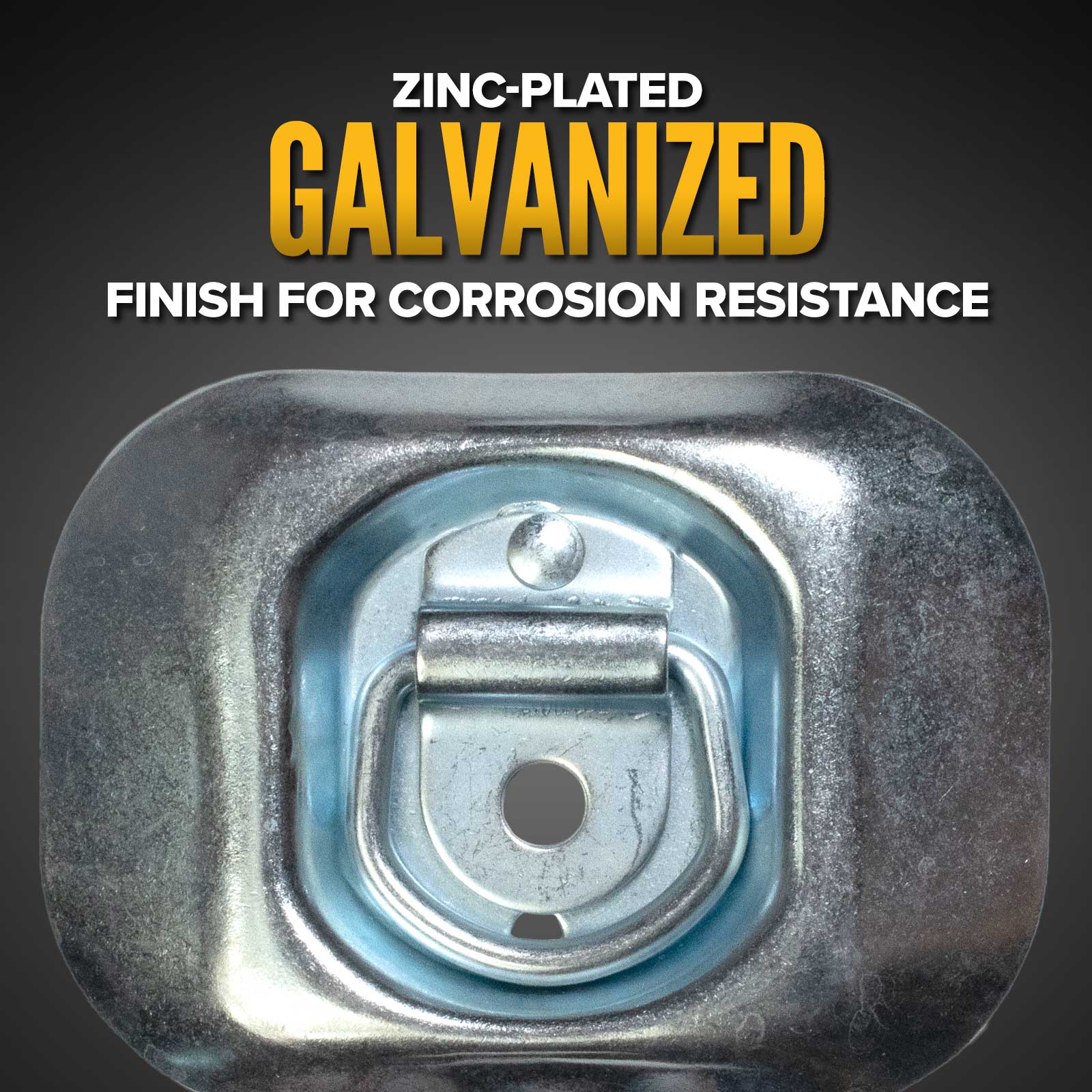 This D-ring comes with a galvanized finish (also known as zinc-plating) to prevent corrosion, making it suitable for most exterior applications. It's well-suited even for enclosed trailers with moderate exposure to moisture or mud.