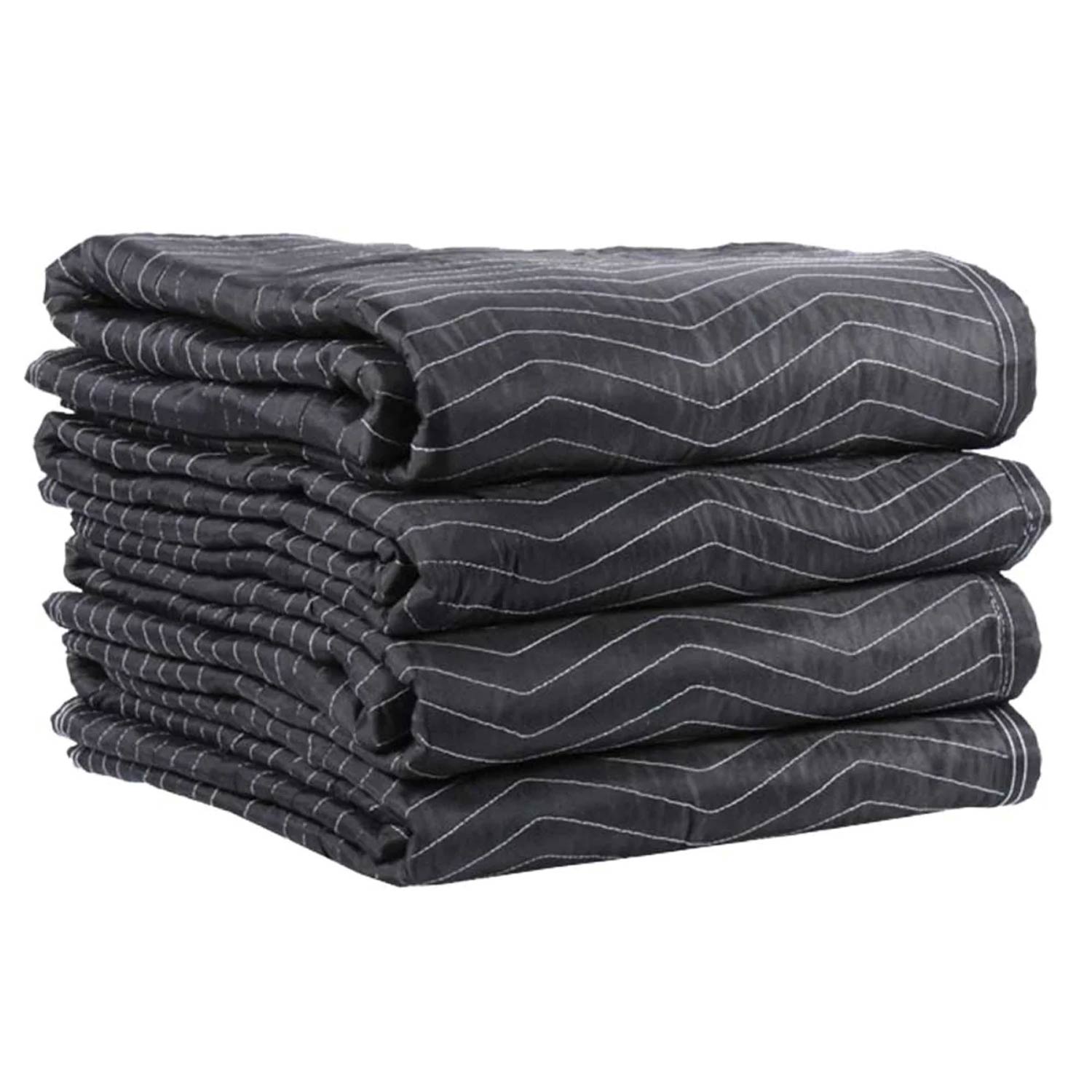 Our supreme moving blankets are made of a cotton/polyester blend, woven polyester binding, and a recycled cotton filler for exceptional durability that stands up to repeated use. The rugged construction and superior level of padding make these moving pads a top choice for moving companies, furniture movers, and those who intend to reuse the blankets.