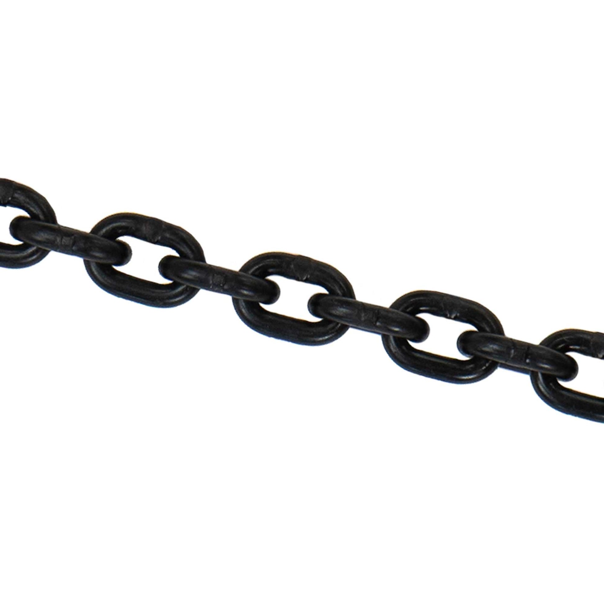 This chain was made in the USA using special analysis alloy steel, with a black Thermadep finish. Ideal for use in overhead lifting applications, it has a high strength-to-weight ratio and is quenched and tempered before proof testing.