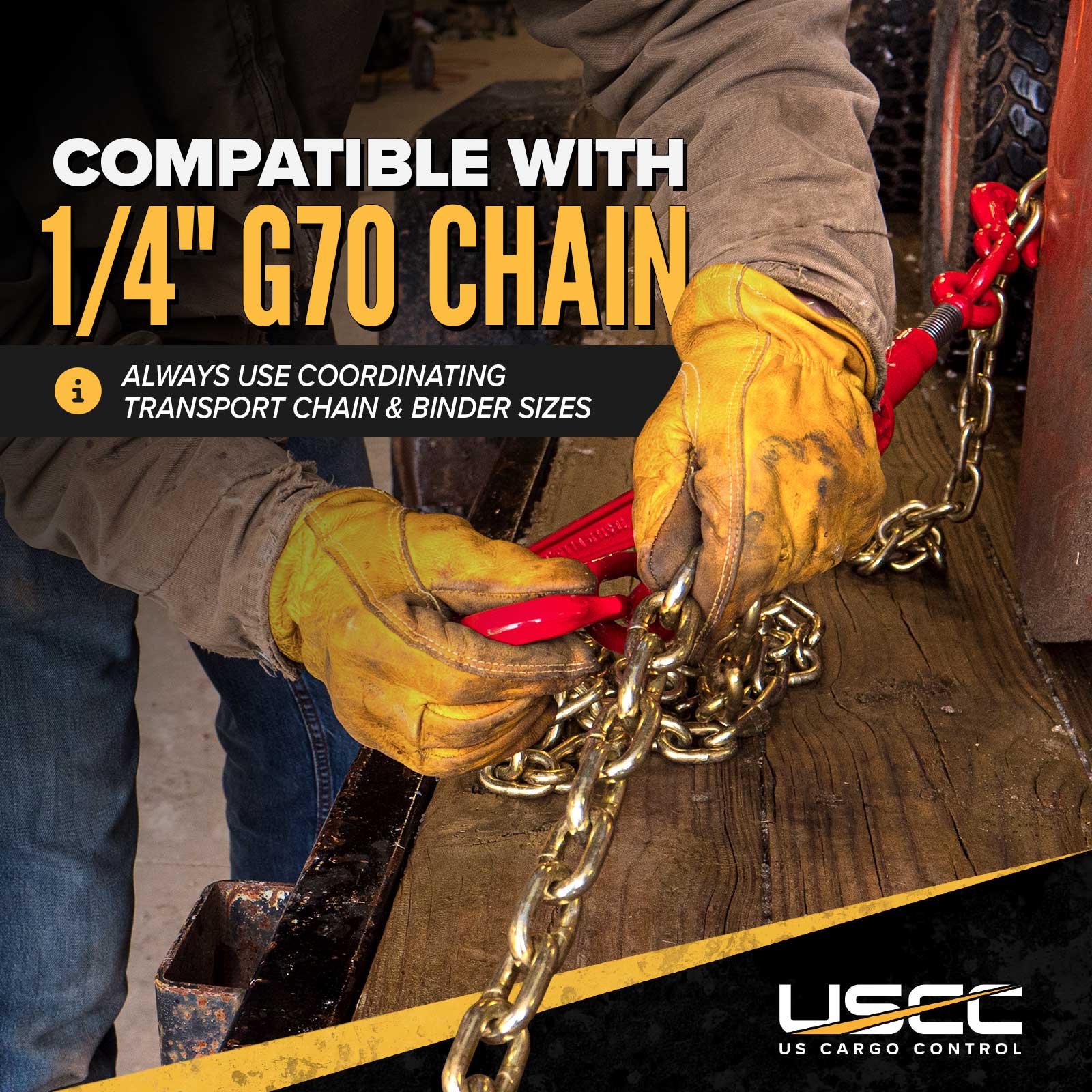This chain binder should be used with 1/4" grade 70 transport chain.