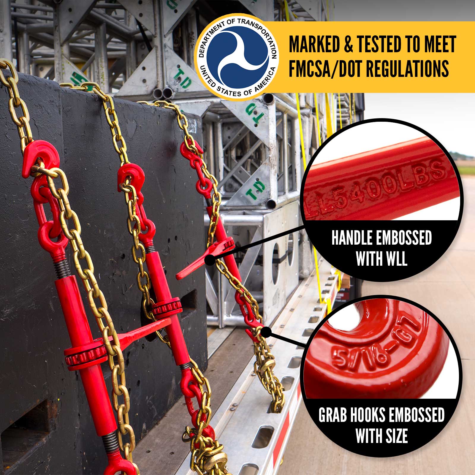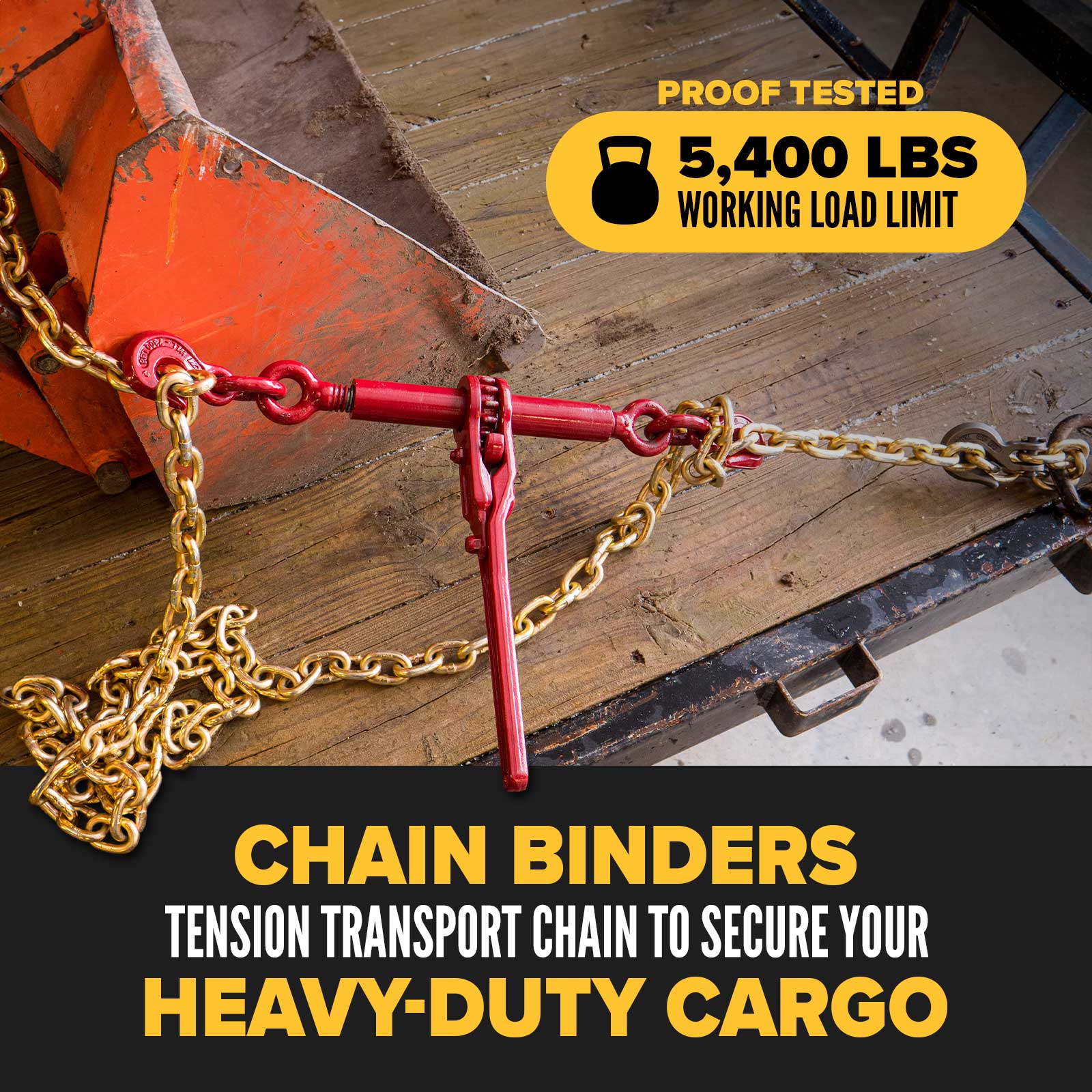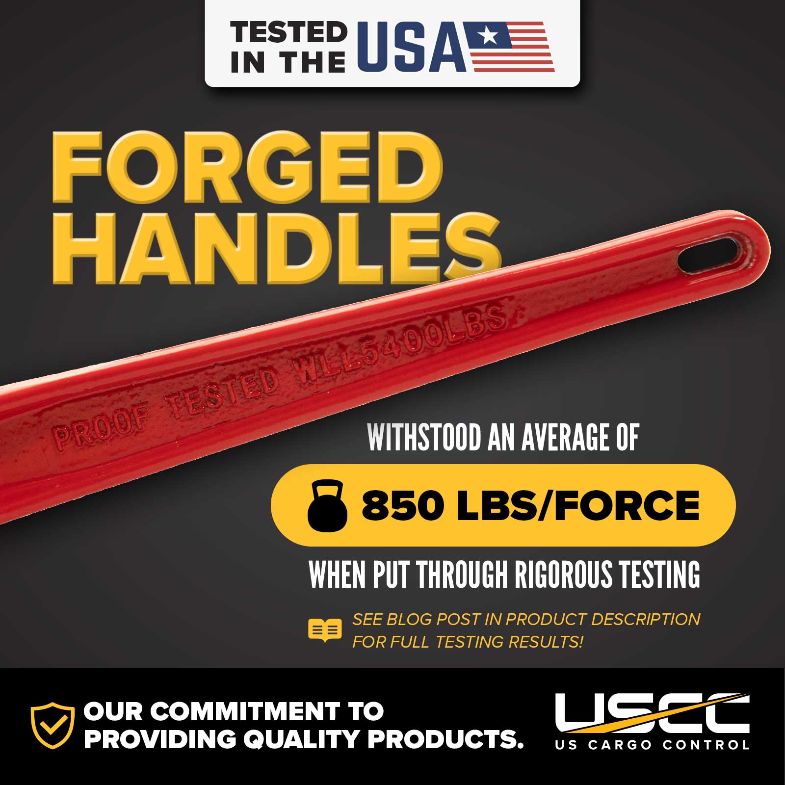 Learn MoreOur chain binders feature forged steel handles—not cast like many competitors. Forged steel delivers superior strength and durability, handling far more force without breaking. Tested in an Iowa-based Industrial Research Facility, we found that our standard chain binder handles withstood an average of 850 lbs/force!