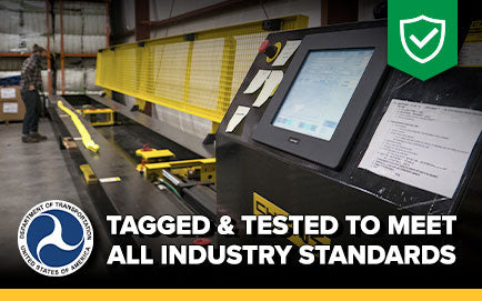 All of our ratchet straps are tested in the USA to ensure they meet all standards - they are tagged with the working load limit to meet FMCSA and DOT regulations, CVSA and WSTDA guidelines, and North American Cargo Securement standards.