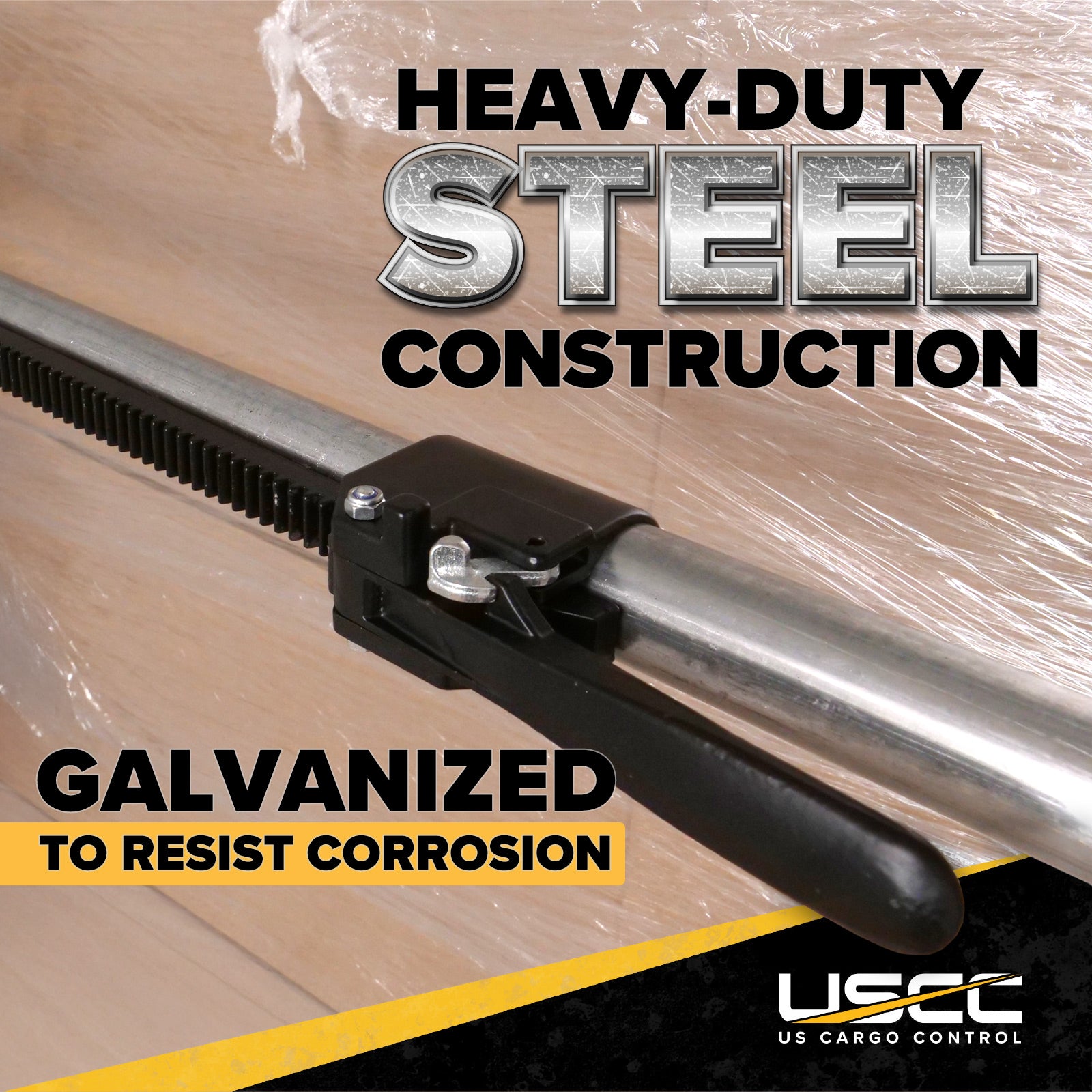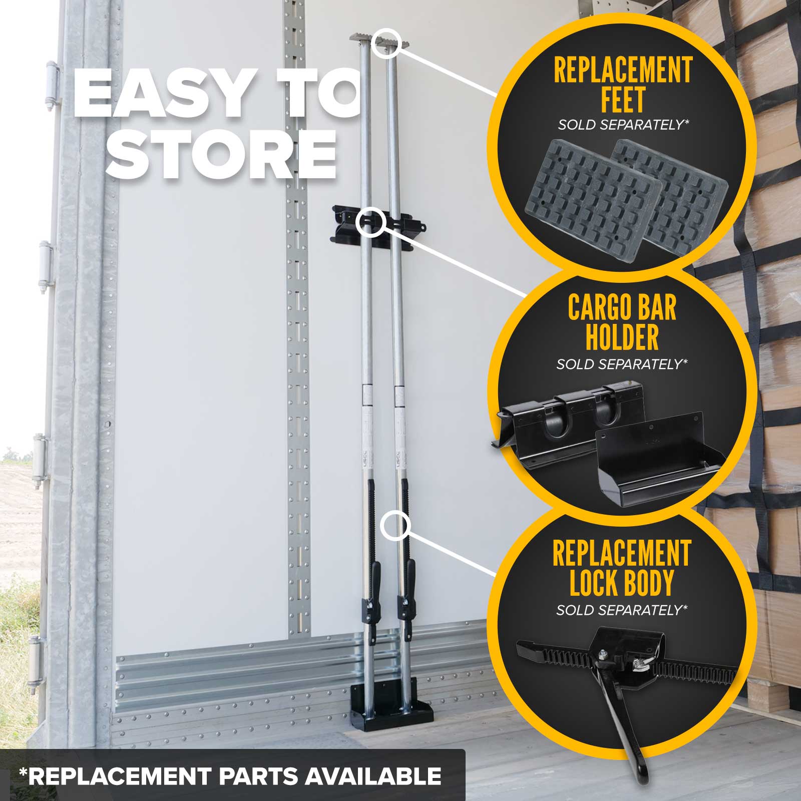 Cargo bars feature 2.5" x 4" bolt-on padded feet for no-slip traction once they are extended to appropriate pressure. Also known as trailer load locks, these adjustable round steel tube load bars are made of high-quality steel and adjust from 89" to 103.94".