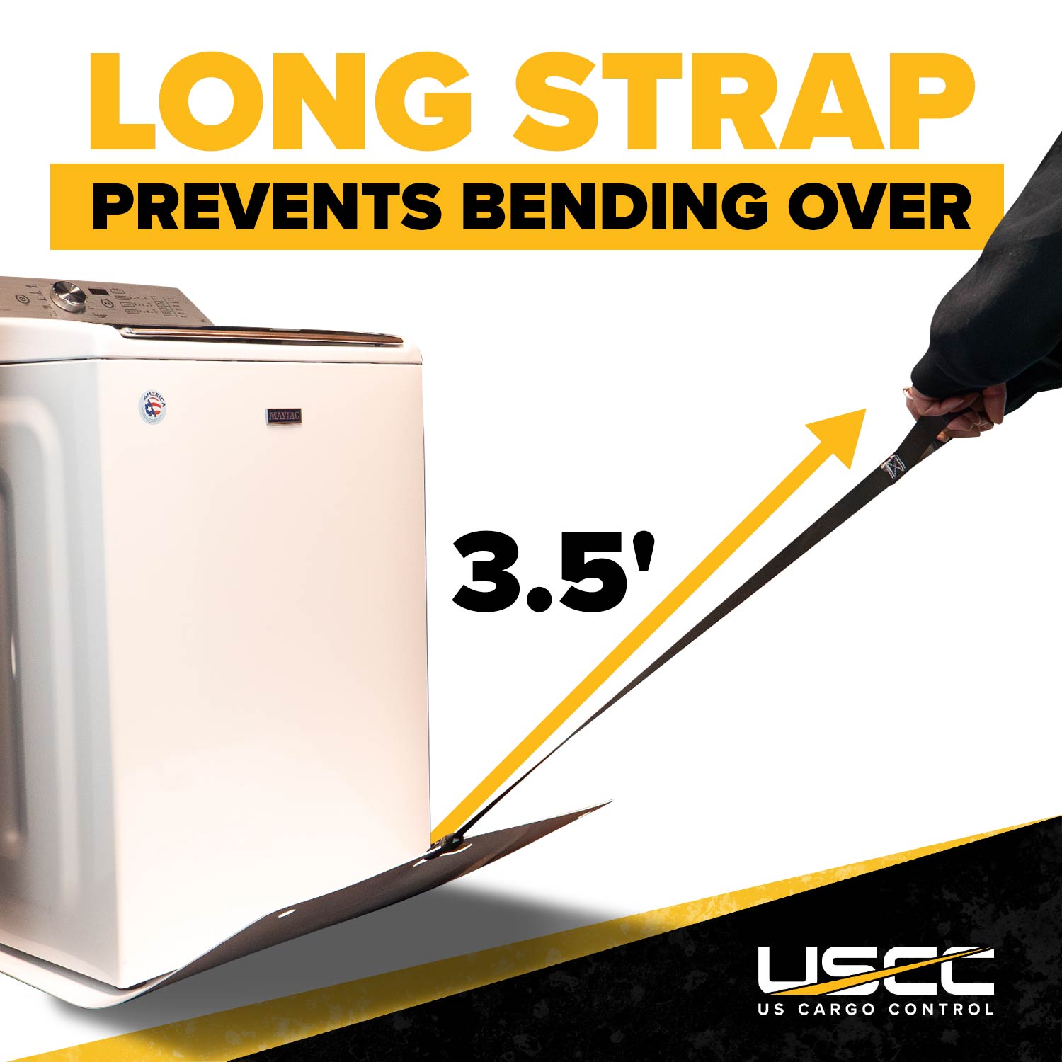 The scuff guard is perfect for appliance repair technicians who frequently slide refrigerators and other large appliances for repairs, as well as professional movers and do-it-yourselfers. A convenient handle cut-out makes it easy to maneuver. Plus, the included 1" x 3.5' pull strap can be easily attached to the handle cut-out using either of the two 4" sewn-in loops, allowing the user to maintain a more upright position during use for added comfort. You can even use multiple scuff guards together to move appliances without the risk of damaging flooring.