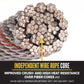 The 19x7 construction means they are more flexible and easier to work with, while the higher outer strand count offers better spin-resistance than 8x19 options. It has more than 10 outer strands and is classified as a Category 2 Rotation-Resistant Rope, meaning it has significant rotation-resistance.