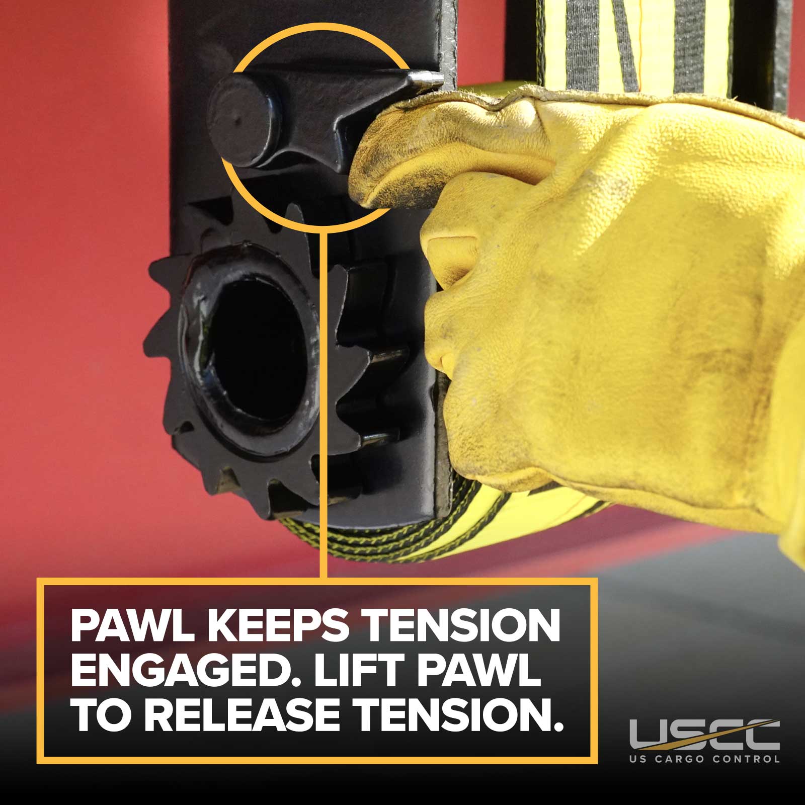 The standard design offers superior excess webbing storage compared to low profile options, so you'll have more webbing available to handle larger cargo. It's also perfect for use with roll-off container straps.