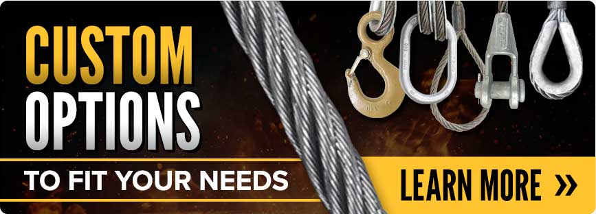 Don't see exactly what you're looking for? We also offer custom lifting and rigging options! Get the perfect wire rope sling for your application by calling or filling out our custom wire rope slings online form to get started. Our team of product experts is here to help answer any questions you may have.